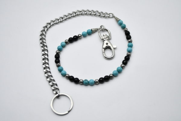 CHAIN FOR STEEL PANTS WITH TURQUOISE AND ONYX BALLS WITH STAINLESS STEEL INSERTS, SIZE 55 CM AND IT IS POSSIBLE TO CUSTOMIZE THE SIZE.