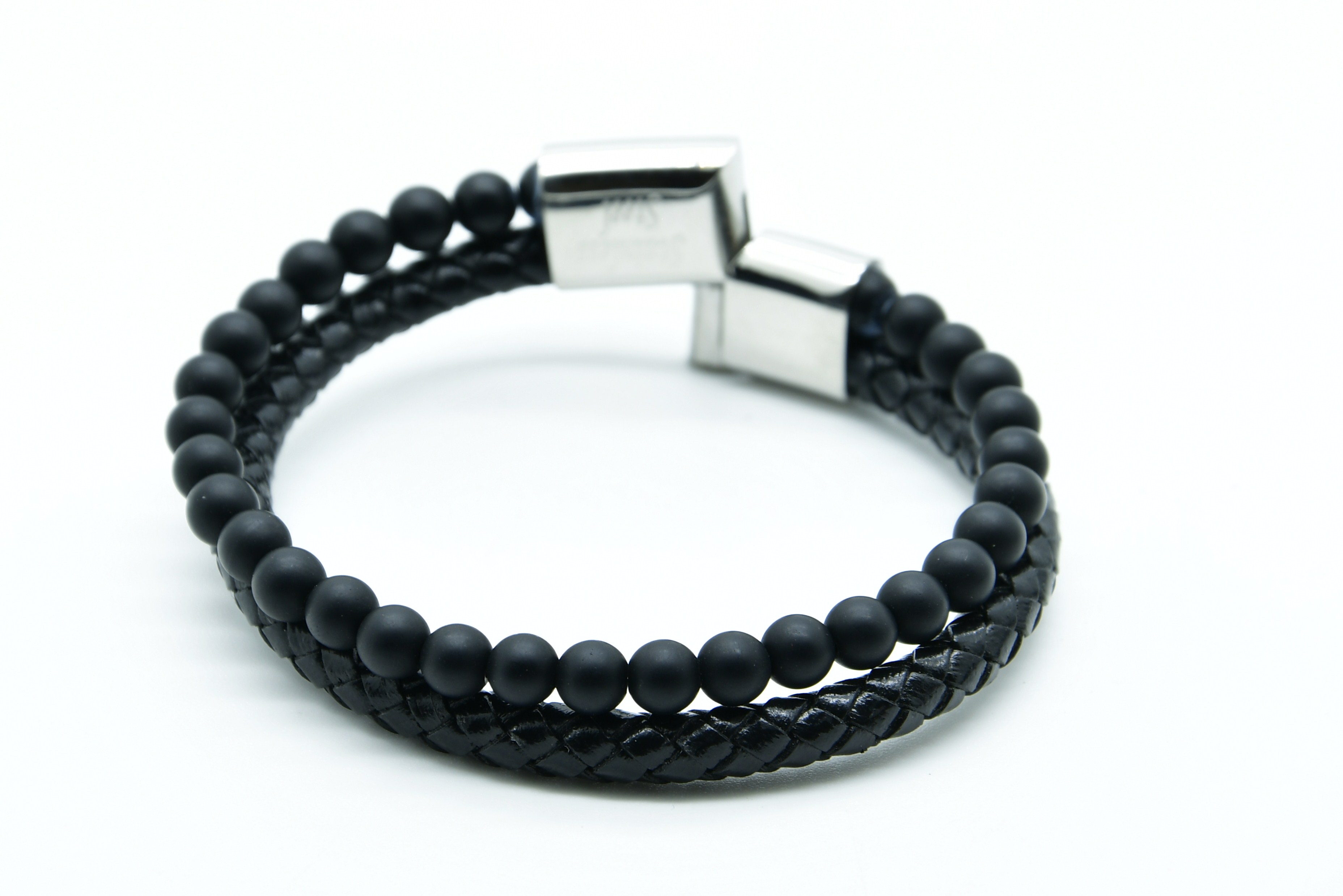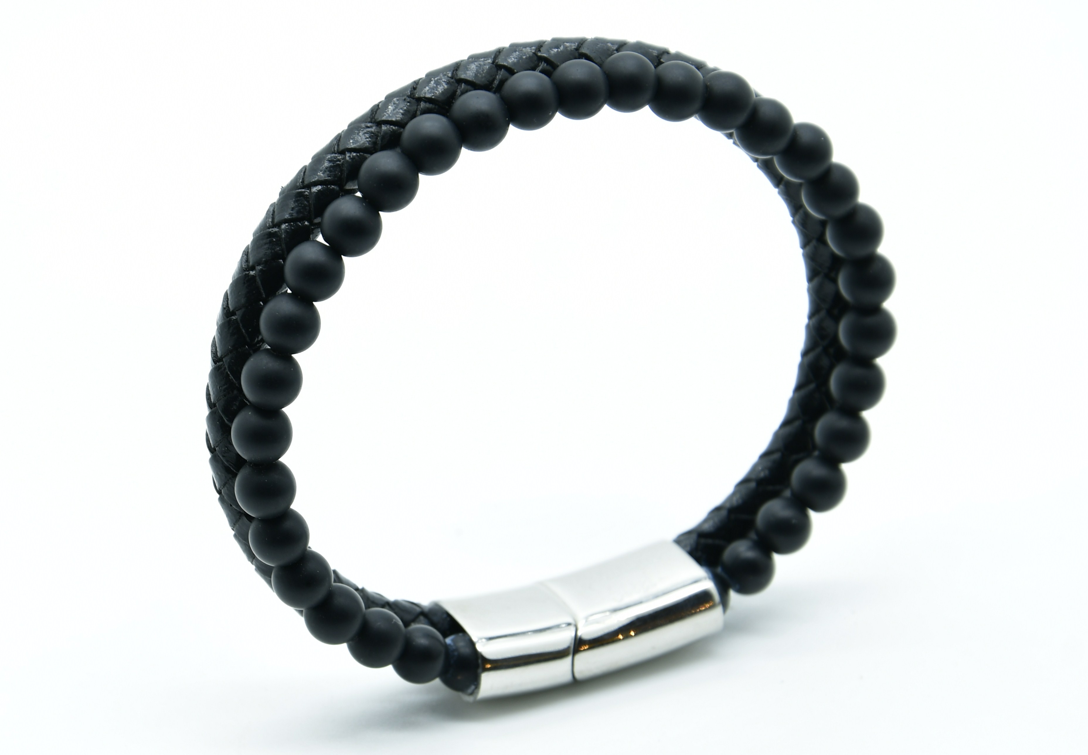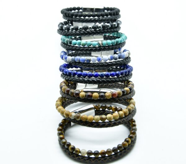 BR8- BRACCIALE IN PIETRA ONICE OPACO E PELLE