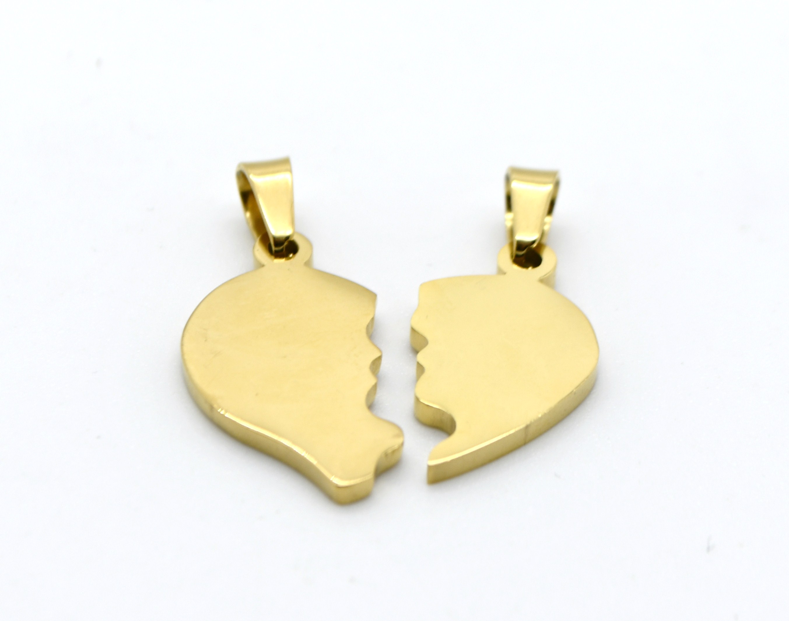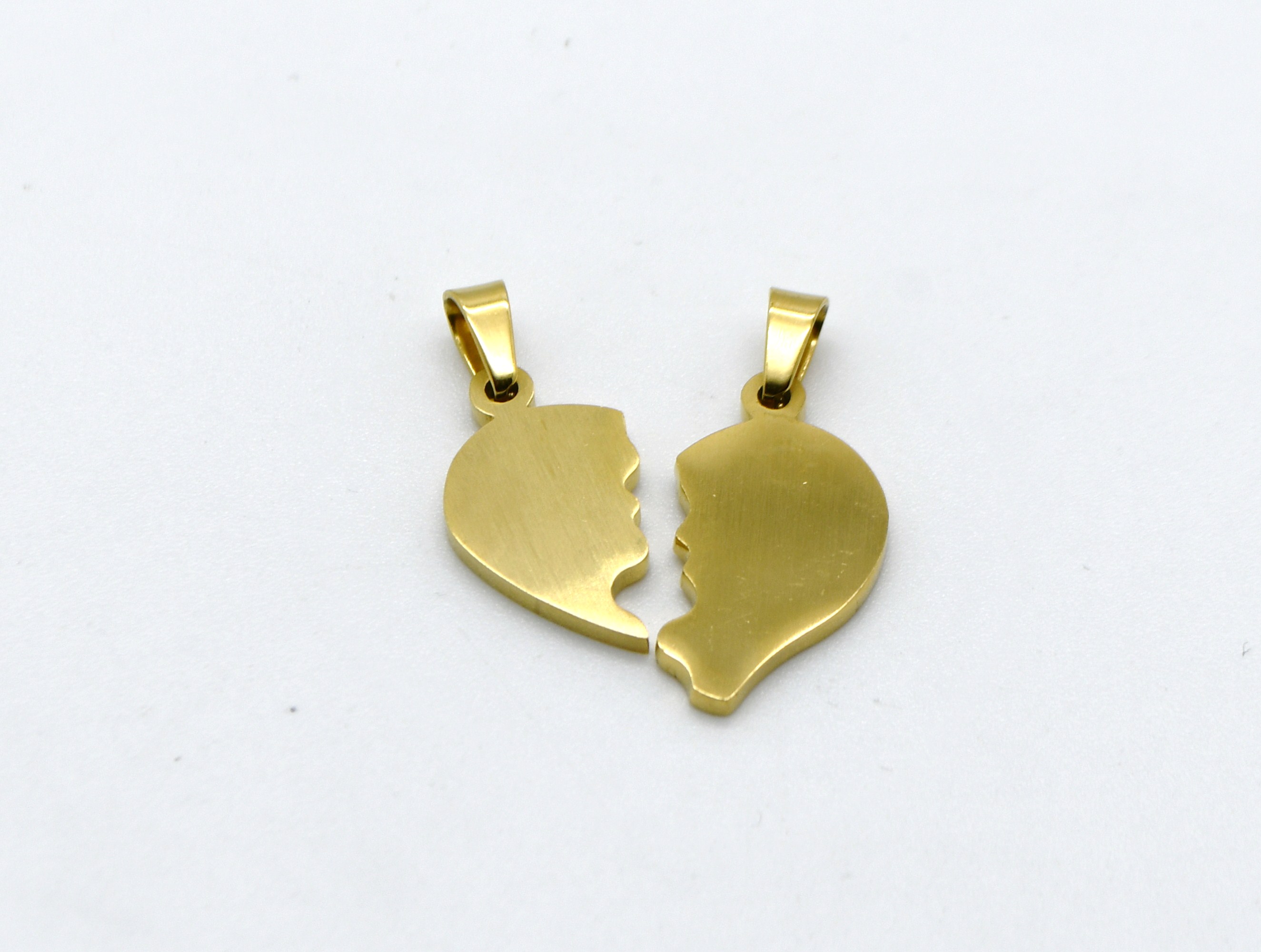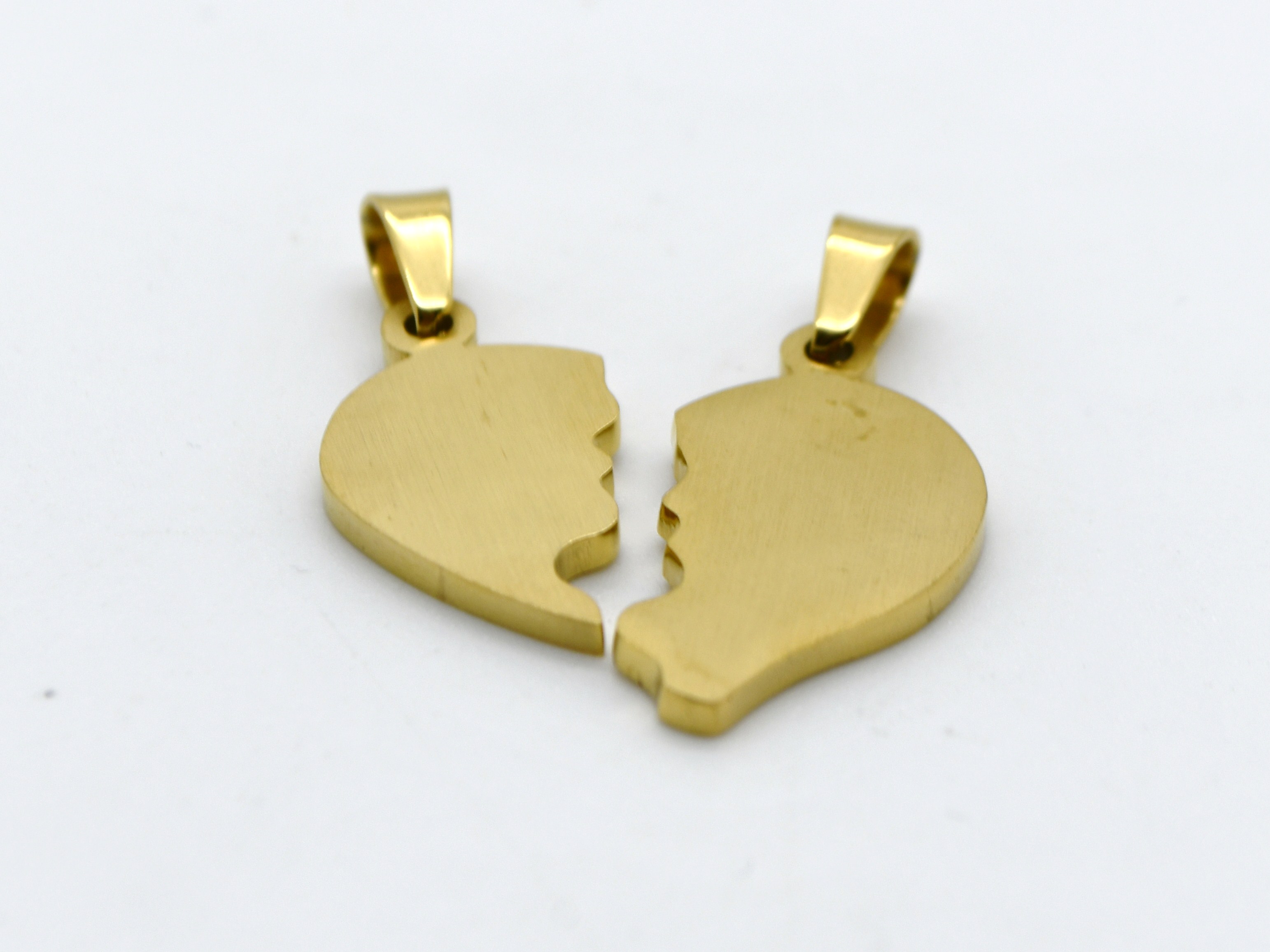 Cuore in acciaio inox, spezzato, con possibilità di fare incisione compresa nel prezzo, altezza 2 cm e larghezza 2,5 cm.